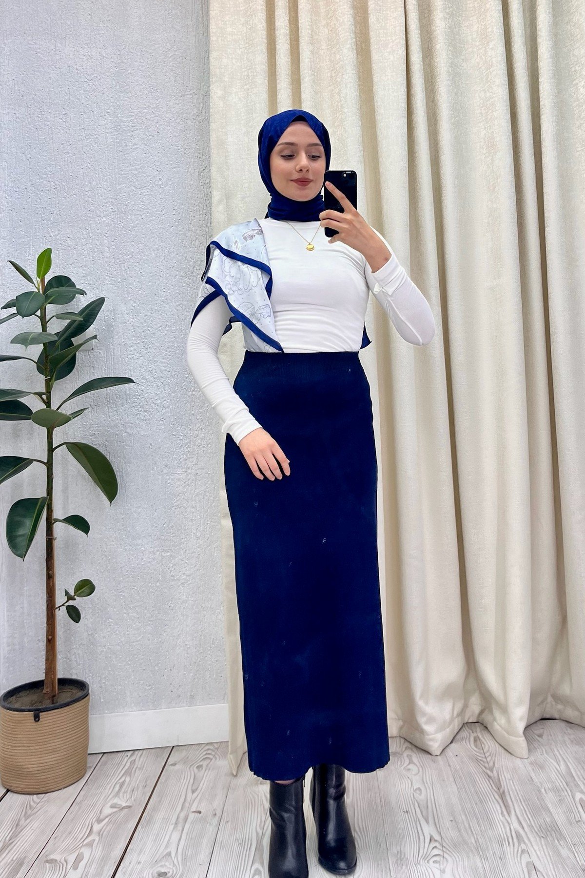 Beli Lastikli Triko Etek Lacivert