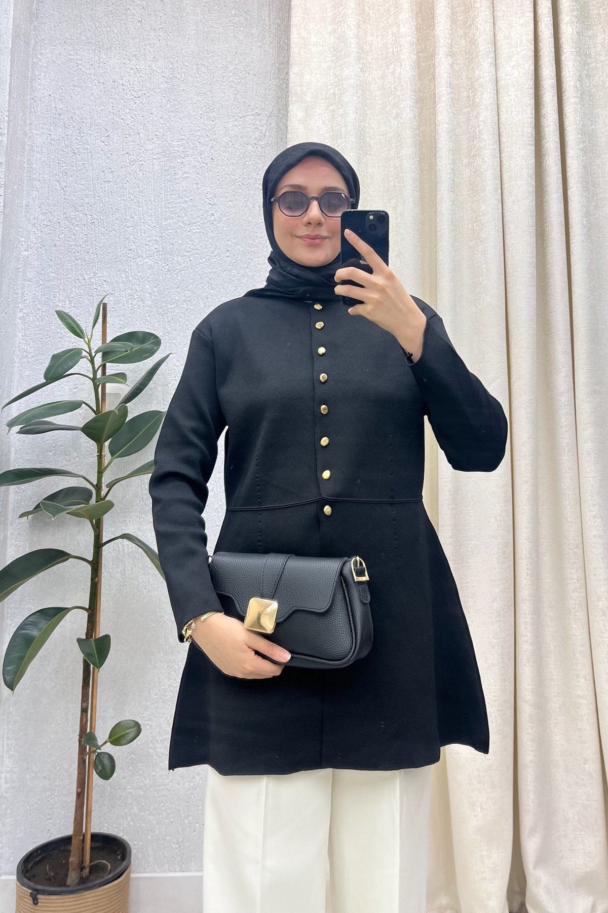 Düğmeli Çelik Örme Triko Tunik Siyah