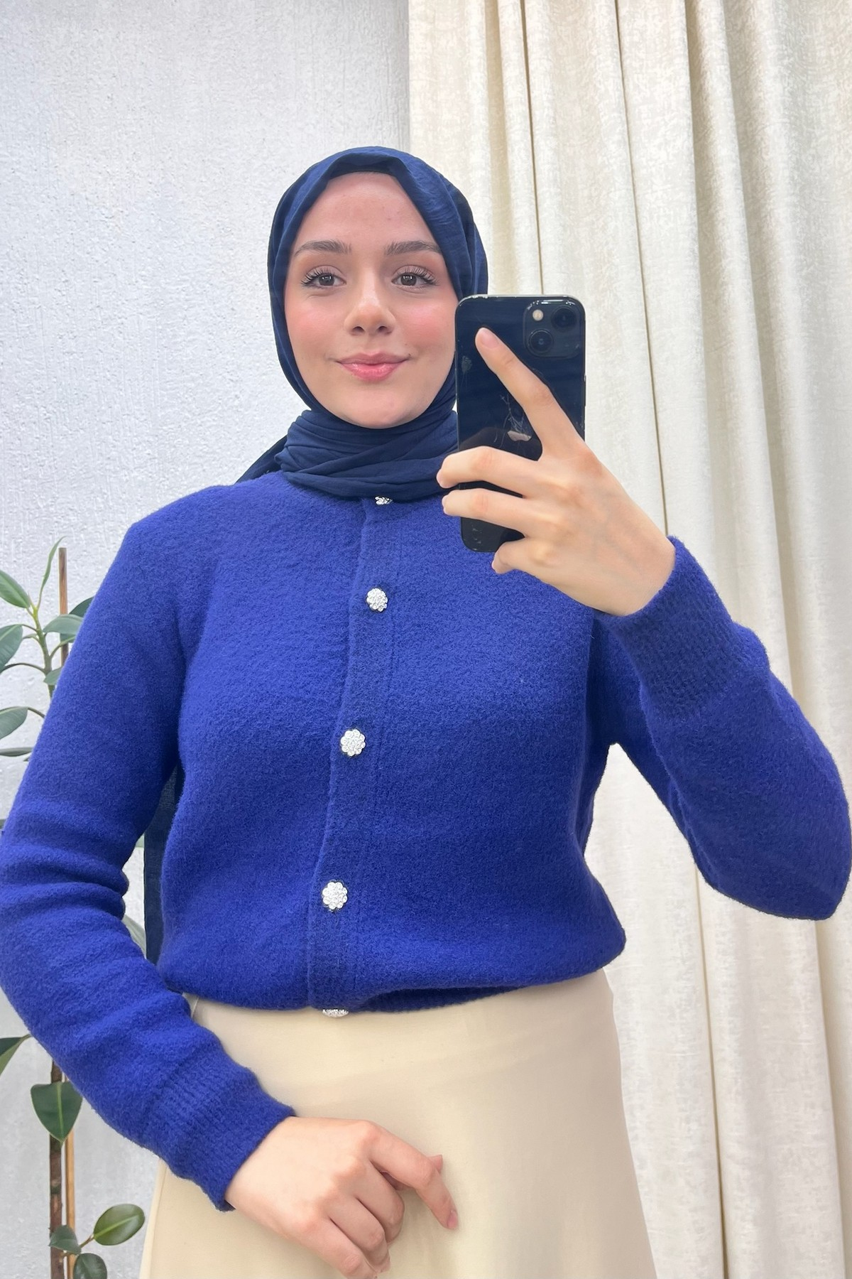 Düğmeli Yumoş Hırka Lacivert