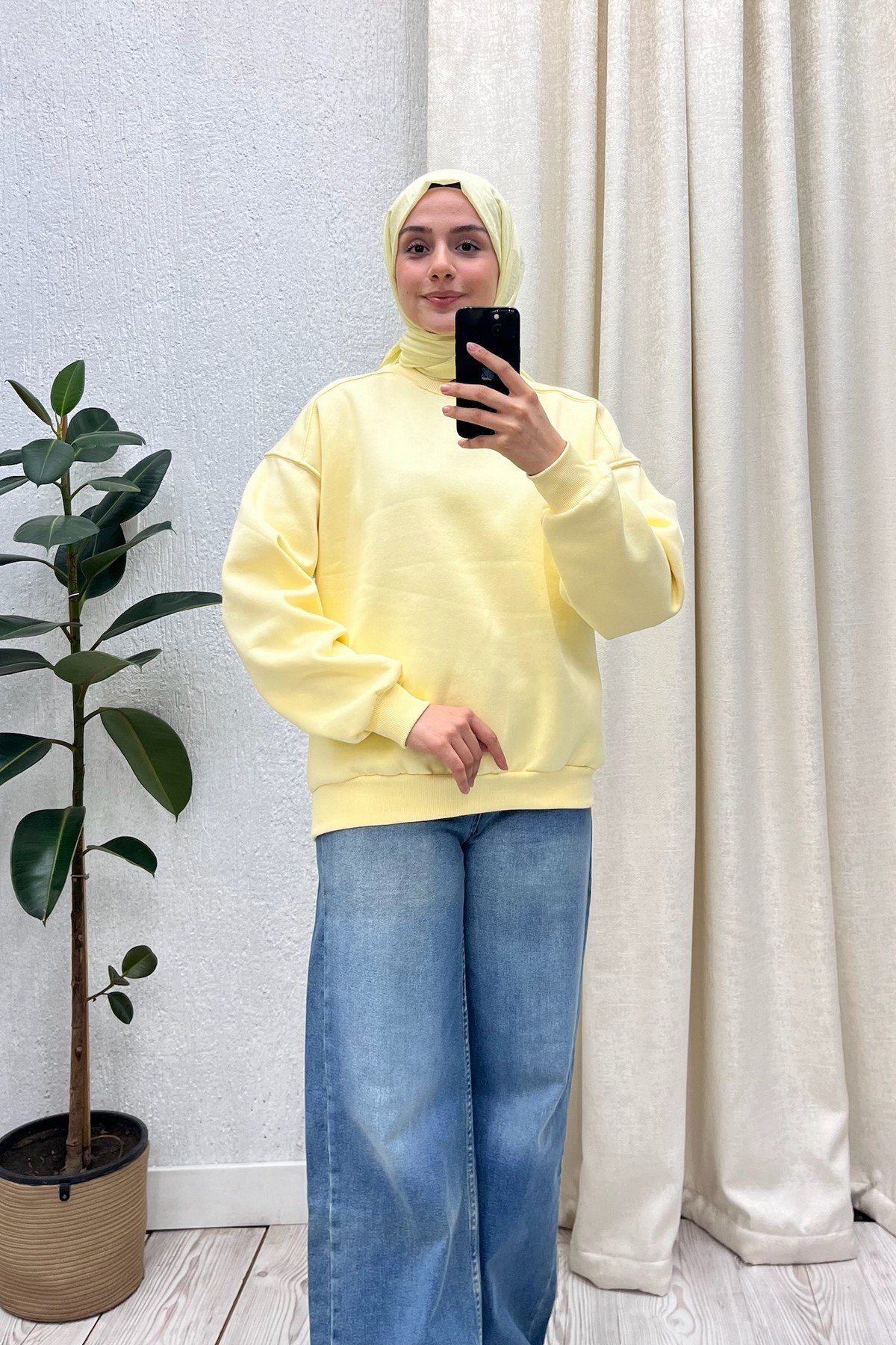 Düz Renk Üç İplik Sweat Sarı