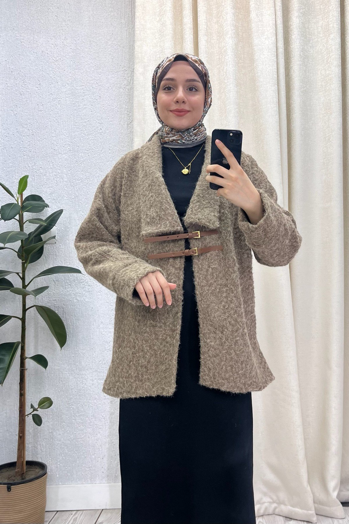 Kemer Detaylı Kaşe Ceket Kahverengi