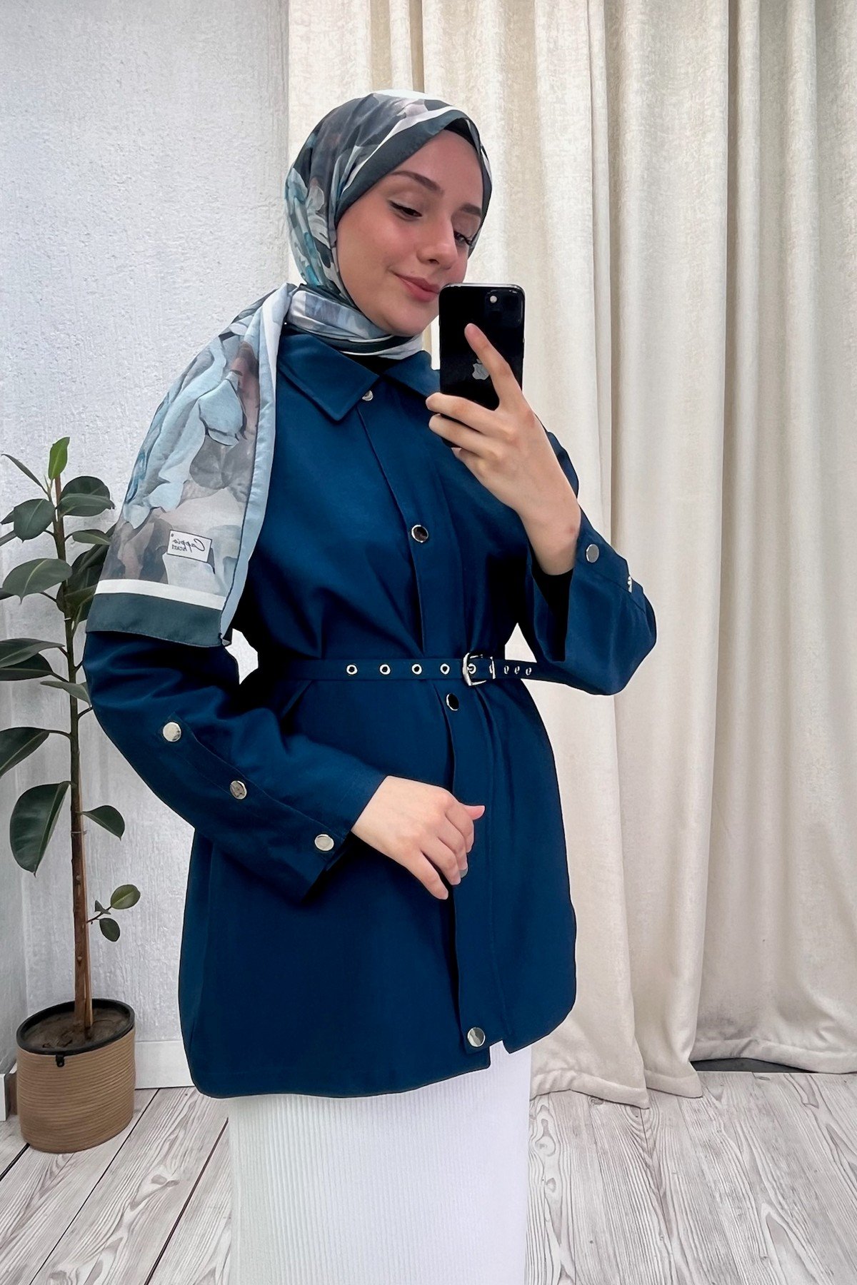 Kemerli Çıtçıt Detaylı Gömlek Mavi
