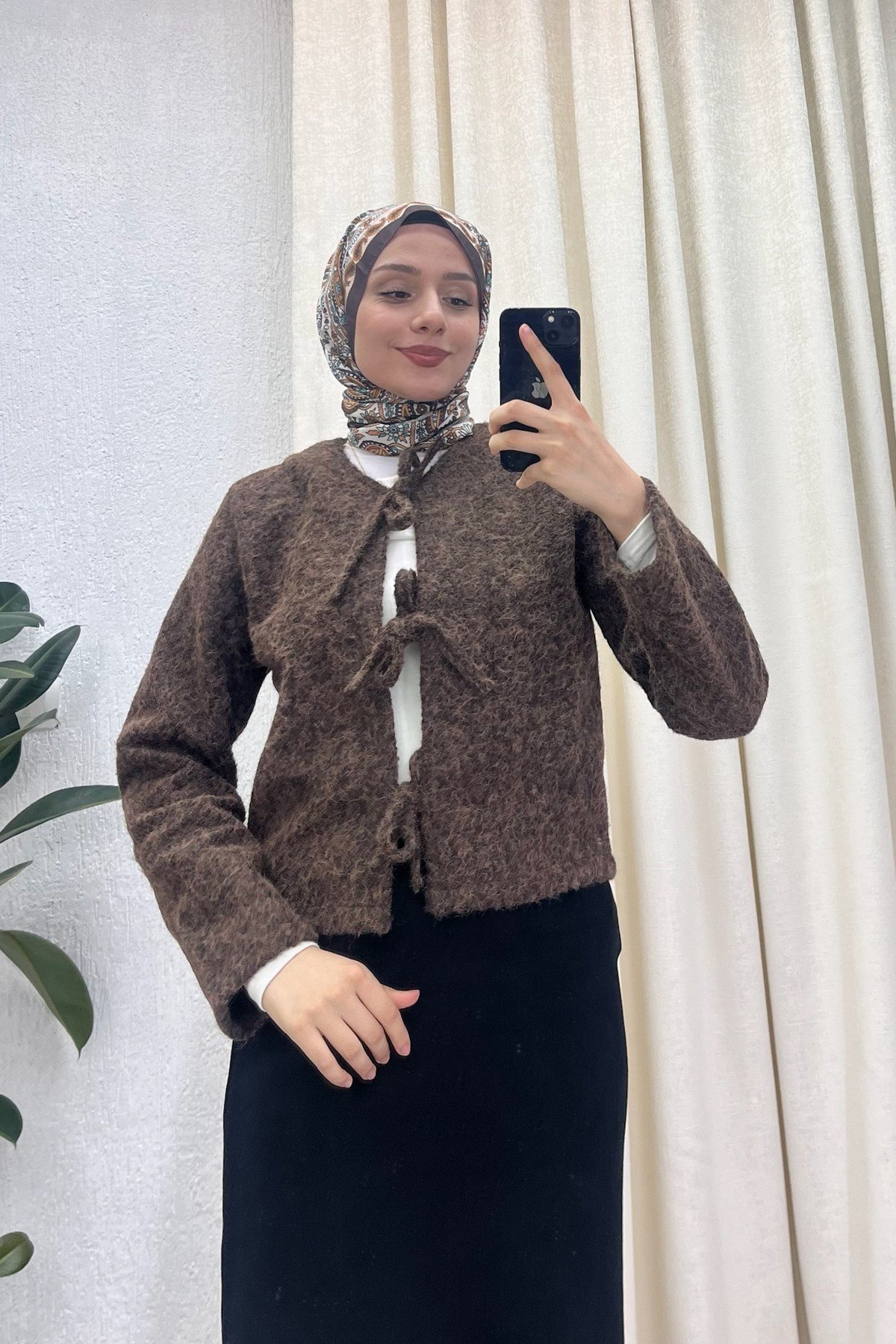 Önü Bağlamalı Kısa Kaşe Ceket Kahverengi