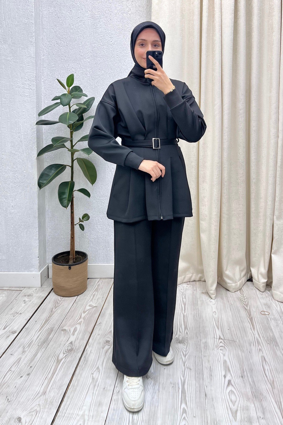 Pensli Kemerli Scuba Pantolon Takım Siyah