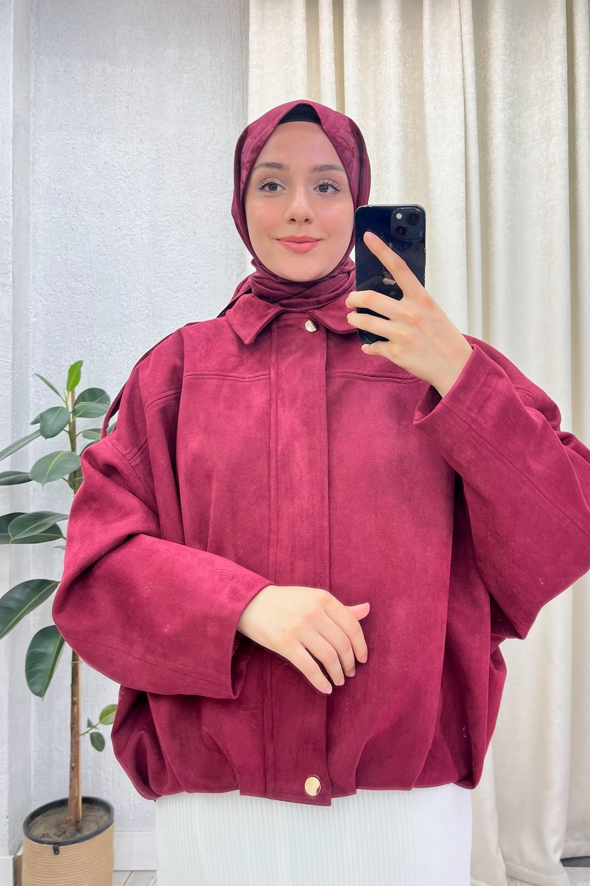Süet Bambır Ceket Bordo