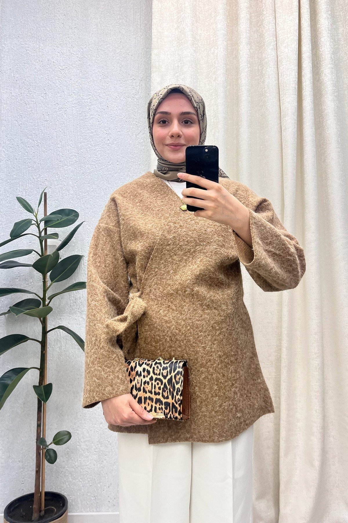 Yandan Bağlamalı Kaşe Ceket Kahverengi
